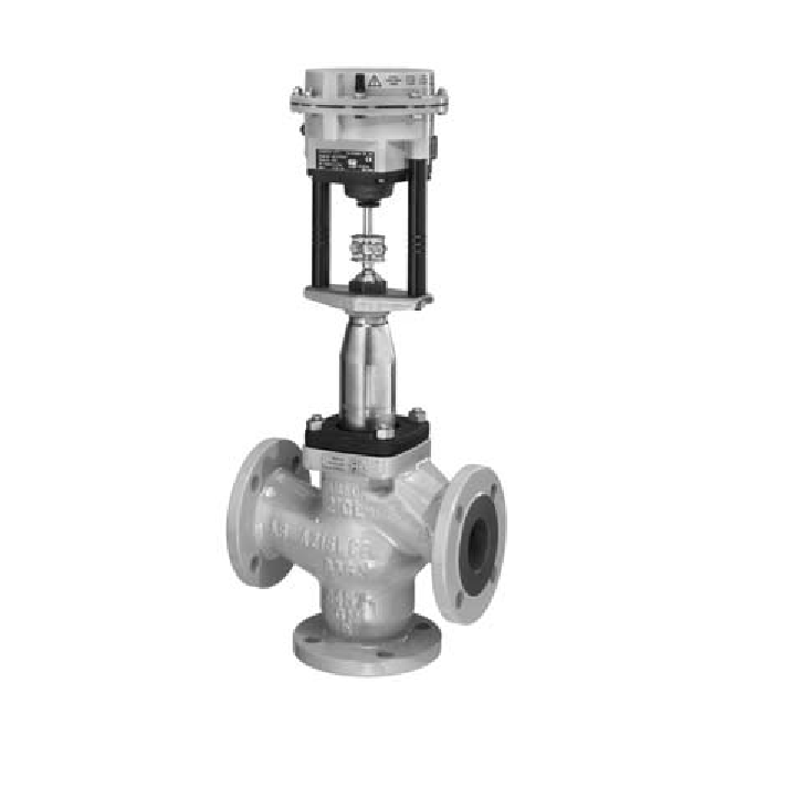 Zawór trójdrogowy V2001 dla oleju termalnego może jako zawór mieszający lub rozdzielający współpracować z siłownikiem pneumatycznym lub elektrycznym: